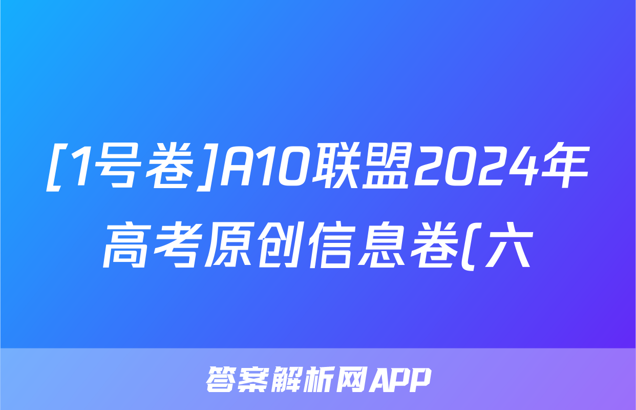 [1号卷]A10联盟2024年高考原创信息卷(六)6地理答案正在持续更新,目前2026卷行天下答案网为大家整理了相关试题及答案,供大家查缺补漏,高效提升成绩。