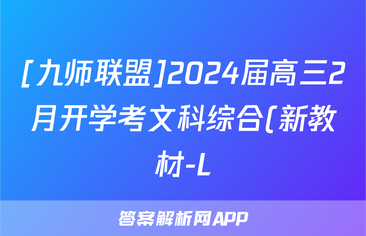 [九师联盟]2024届高三2月开学考文科综合(新教材-L)试题正在持续更新,目前2026卷行天下答案网为大家整理了相关试题及答案,供大家查缺补漏,高效提升成绩。
