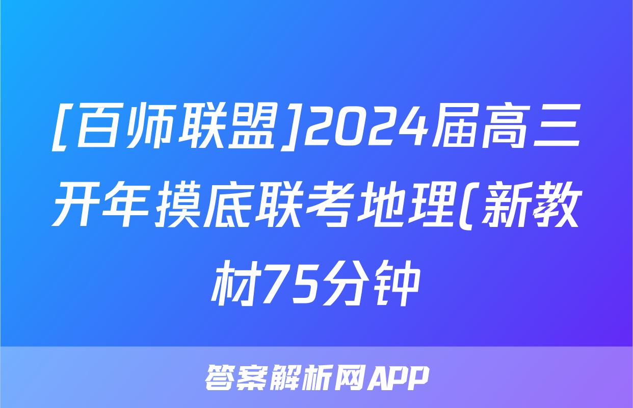 [百师联盟]2024届高三开年摸底联考地理(新教材75分钟)答案正在持续更新,目前2026卷行天下答案网为大家整理了相关试题及答案,供大家查缺补漏,高效提升成绩。