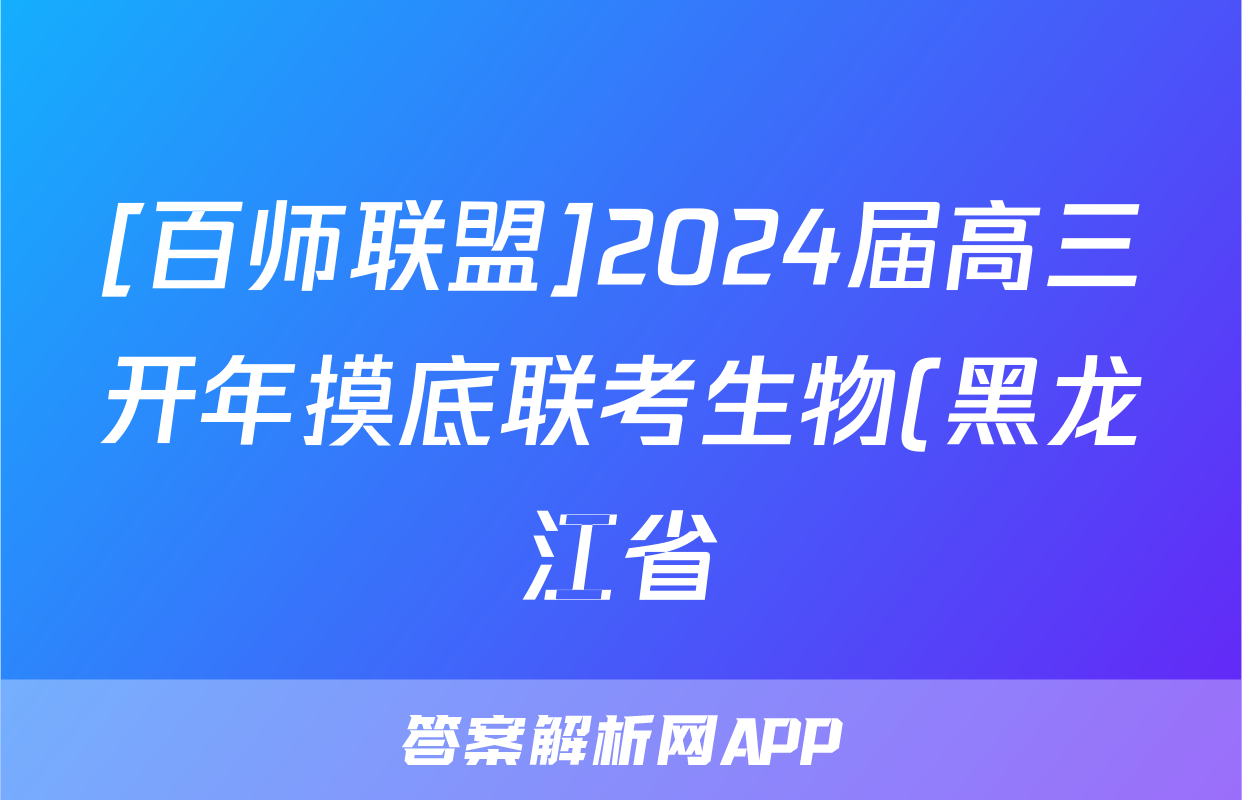 [百师联盟]2024届高三开年摸底联考生物(黑龙江省)试题正在持续更新,目前2026卷行天下答案网为大家整理了相关试题及答案,供大家查缺补漏,高效提升成绩。