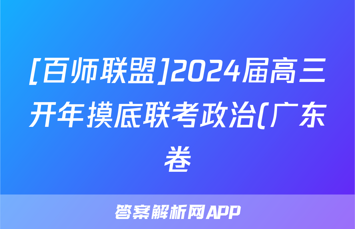 [百师联盟]2024届高三开年摸底联考政治(广东卷)答案正在持续更新,目前2026卷行天下答案网为大家整理了相关试题及答案,供大家查缺补漏,高效提升成绩。