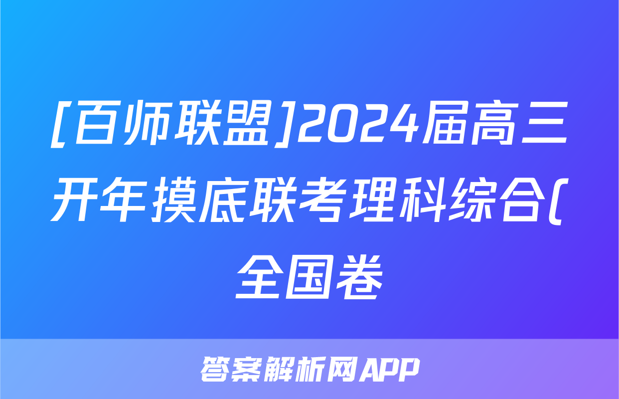 [百师联盟]2024届高三开年摸底联考理科综合(全国卷)试题正在持续更新,目前2026卷行天下答案网为大家整理了相关试题及答案,供大家查缺补漏,高效提升成绩。
