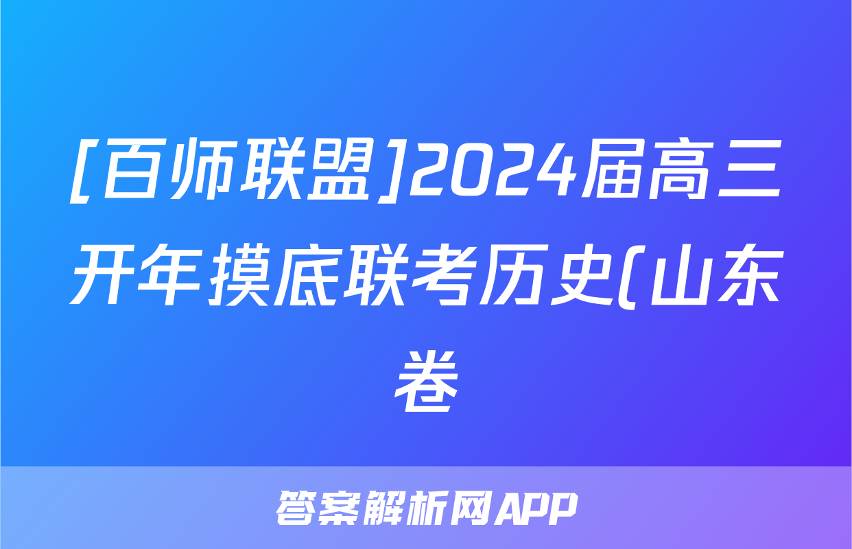 [百师联盟]2024届高三开年摸底联考历史(山东卷)试题正在持续更新,目前2026卷行天下答案网为大家整理了相关试题及答案,供大家查缺补漏,高效提升成绩。
