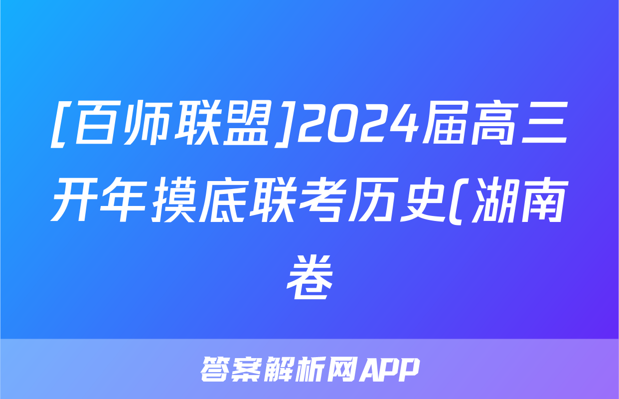 [百师联盟]2024届高三开年摸底联考历史(湖南卷)答案正在持续更新,目前2026卷行天下答案网为大家整理了相关试题及答案,供大家查缺补漏,高效提升成绩。