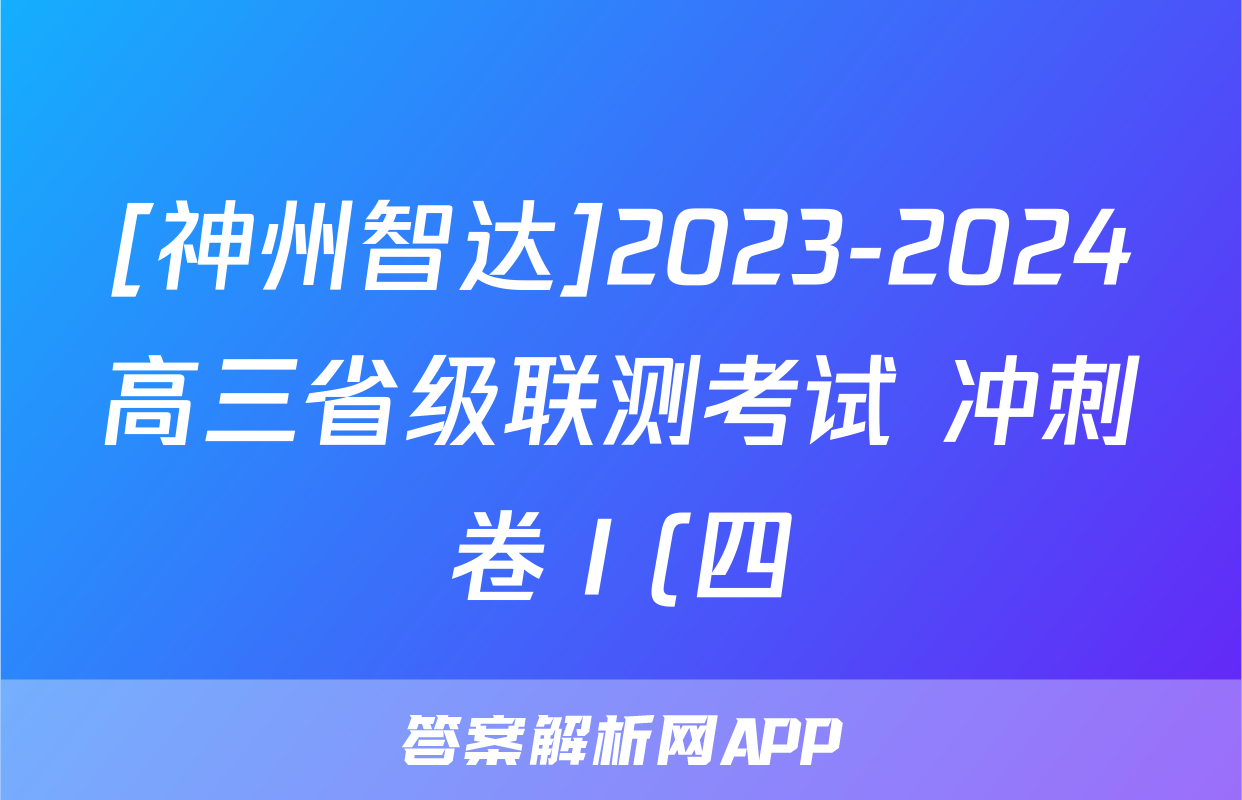 [神州智达]2023-2024高三省级联测考试 冲刺卷Ⅰ(四)4历史答案正在持续更新,目前2026卷行天下答案网为大家整理了相关试题及答案,供大家查缺补漏,高效提升成绩。