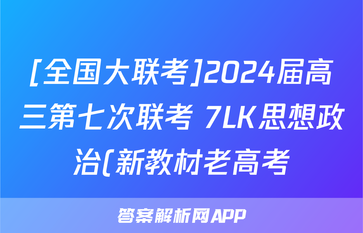 [全国大联考]2024届高三第七次联考 7LK思想政治(新教材老高考)答案正在持续更新,目前2026卷行天下答案网为大家整理了相关试题及答案,供大家查缺补漏,高效提升成绩。