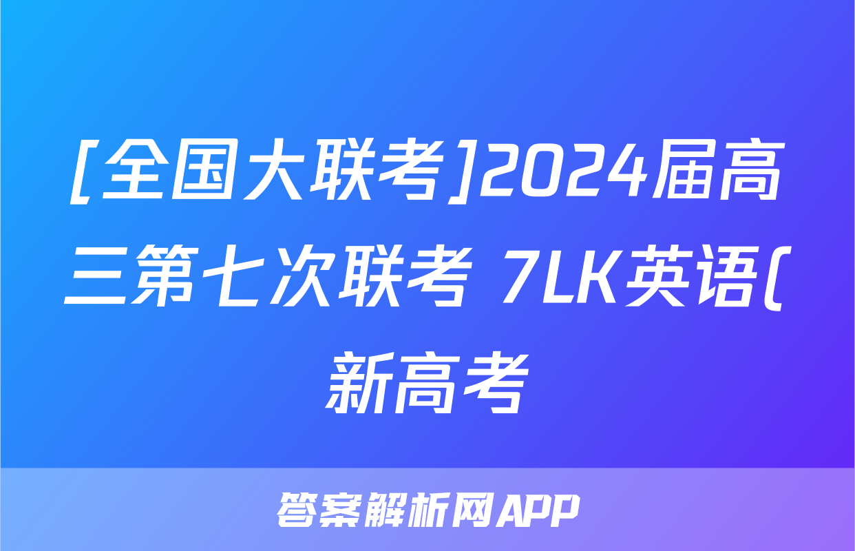 [全国大联考]2024届高三第七次联考 7LK英语(新高考)N试题正在持续更新,目前2026卷行天下答案网为大家整理了相关试题及答案,供大家查缺补漏,高效提升成绩。