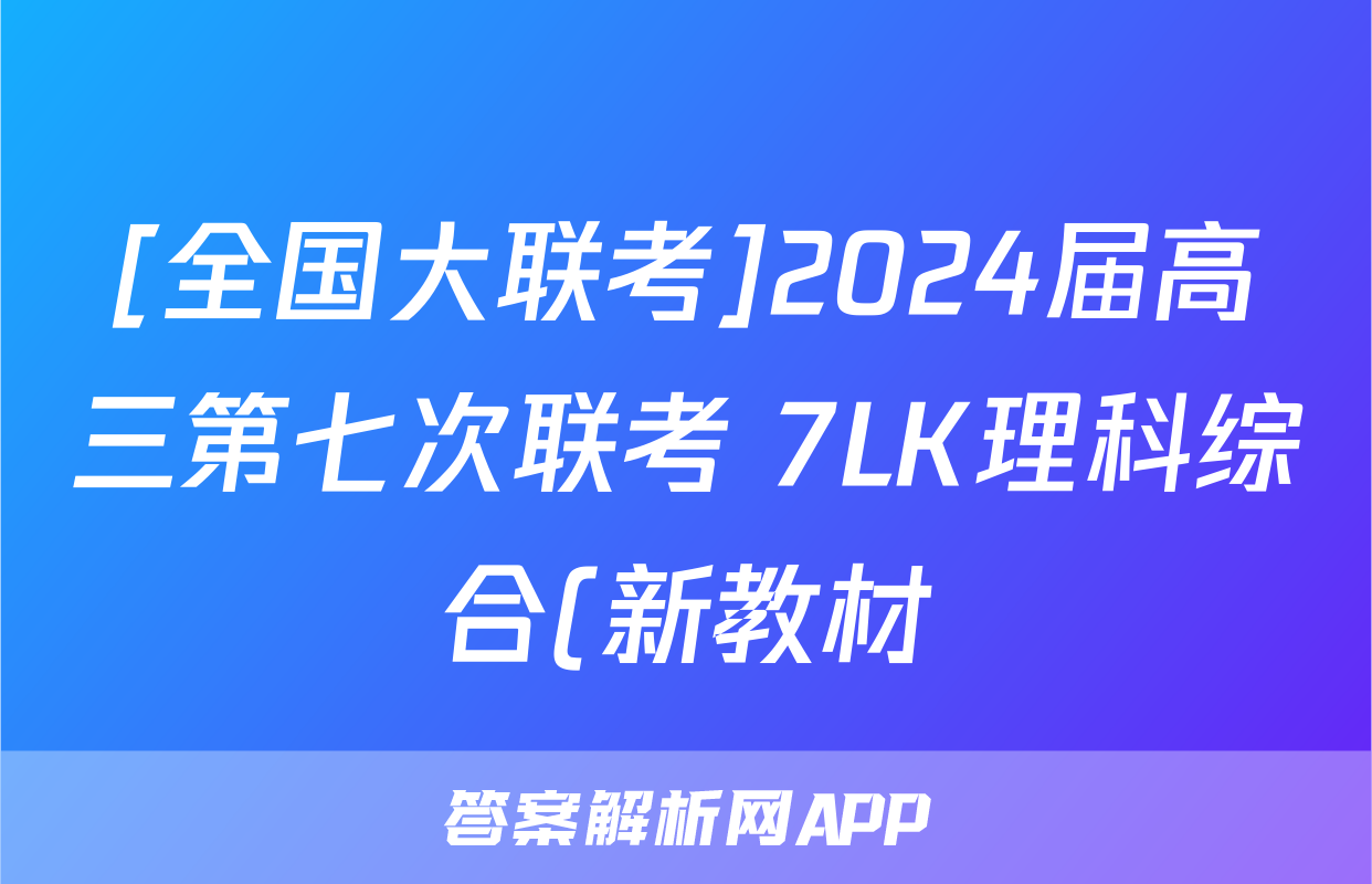 [全国大联考]2024届高三第七次联考 7LK理科综合(新教材)试题正在持续更新,目前2026卷行天下答案网为大家整理了相关试题及答案,供大家查缺补漏,高效提升成绩。