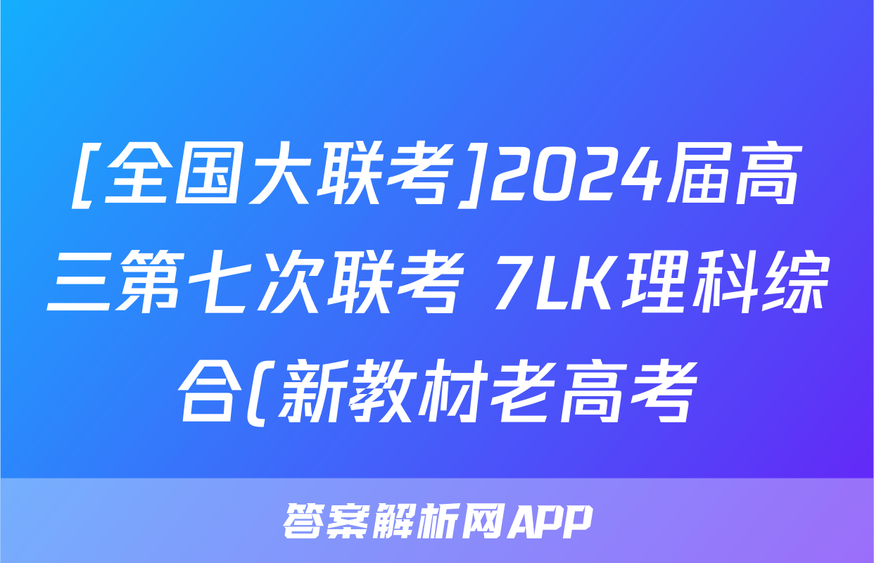 [全国大联考]2024届高三第七次联考 7LK理科综合(新教材老高考)N试题正在持续更新,目前2026卷行天下答案网为大家整理了相关试题及答案,供大家查缺补漏,高效提升成绩。