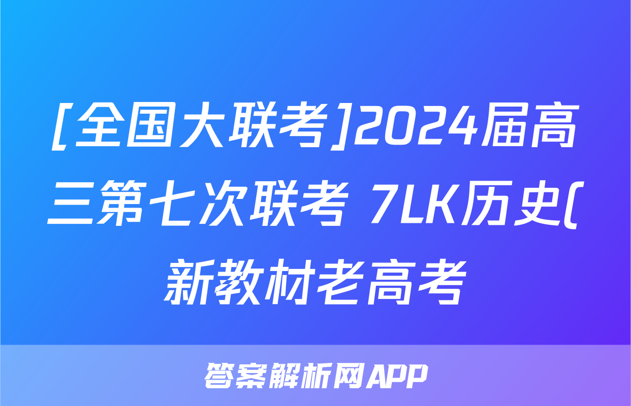 [全国大联考]2024届高三第七次联考 7LK历史(新教材老高考)试题正在持续更新,目前2026卷行天下答案网为大家整理了相关试题及答案,供大家查缺补漏,高效提升成绩。