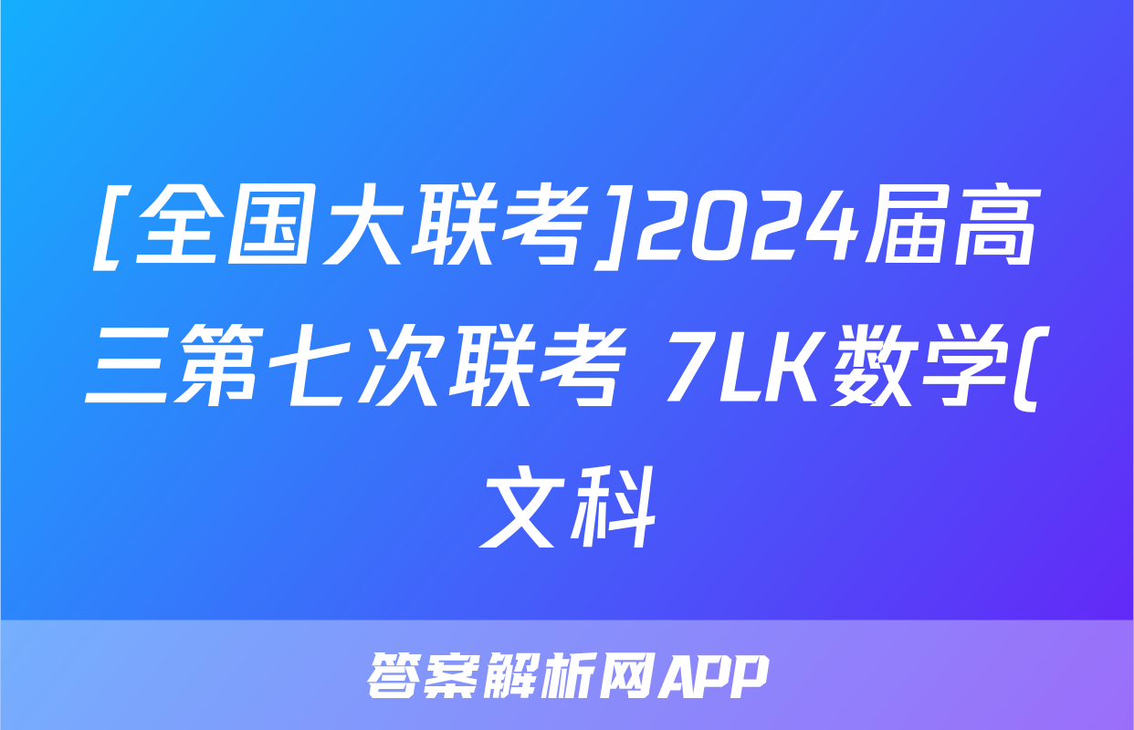 [全国大联考]2024届高三第七次联考 7LK数学(文科)QG试题正在持续更新,目前2026卷行天下答案网为大家整理了相关试题及答案,供大家查缺补漏,高效提升成绩。