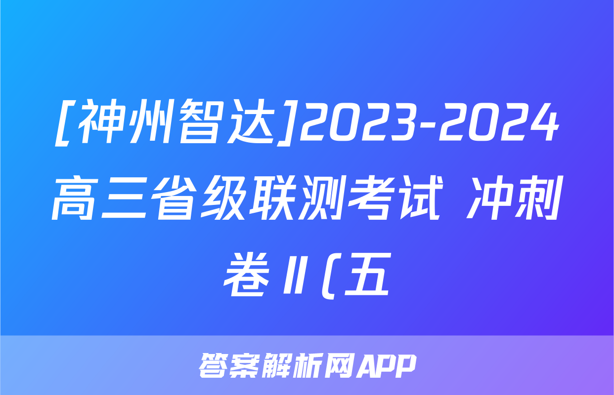 [神州智达]2023-2024高三省级联测考试 冲刺卷Ⅱ(五)5生物试题正在持续更新,目前2026卷行天下答案网为大家整理了相关试题及答案,供大家查缺补漏,高效提升成绩。