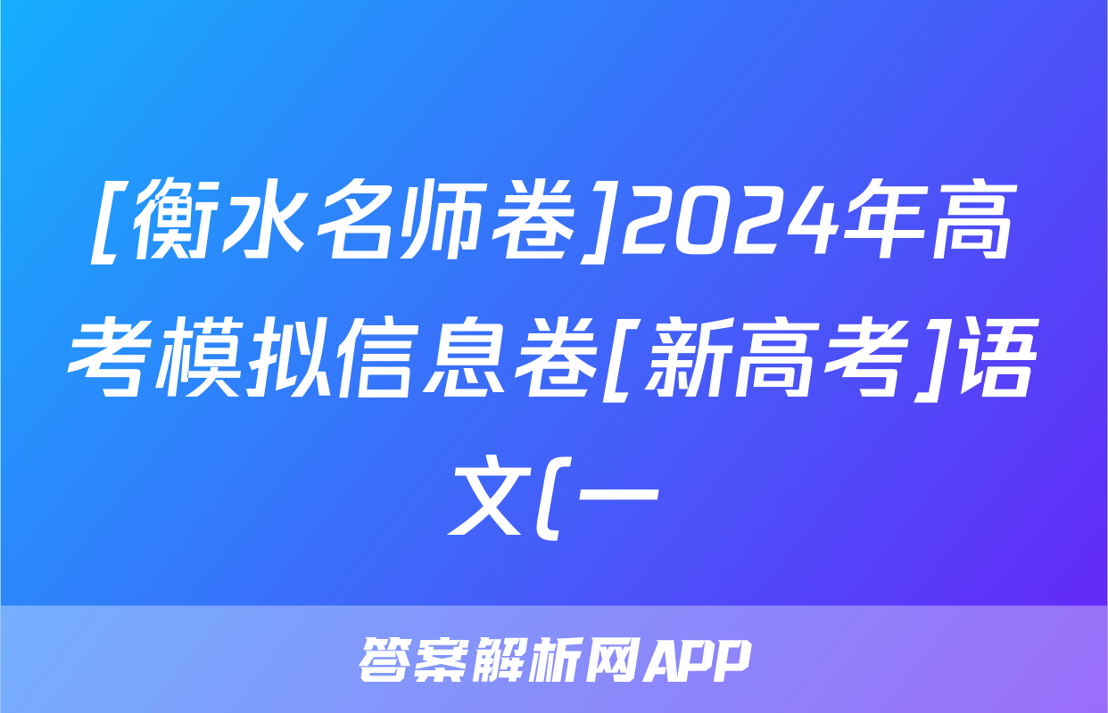 [衡水名师卷]2024年高考模拟信息卷[新高考]语文(一)1试题正在持续更新,目前2026卷行天下答案网为大家整理了相关试题及答案,供大家查缺补漏,高效提升成绩。
