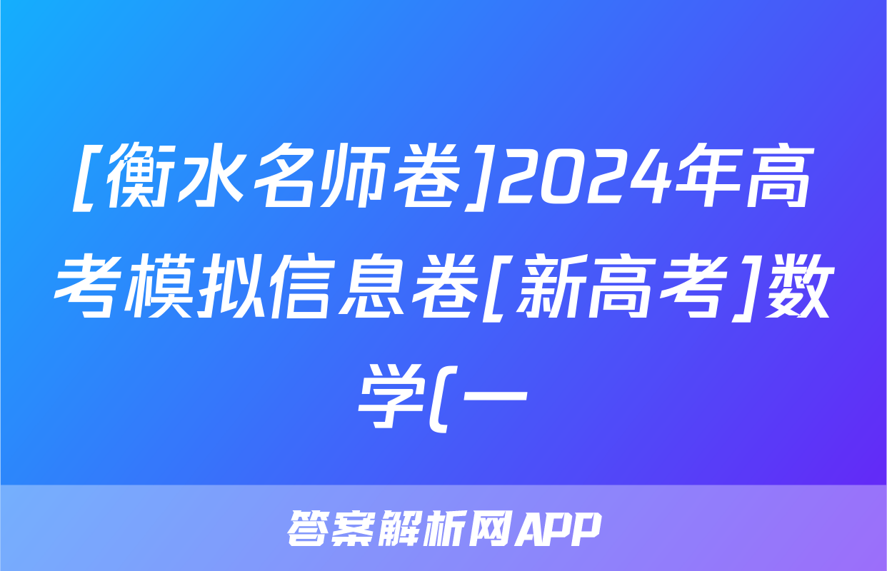 [衡水名师卷]2024年高考模拟信息卷[新高考]数学(一)1试题正在持续更新,目前2026卷行天下答案网为大家整理了相关试题及答案,供大家查缺补漏,高效提升成绩。