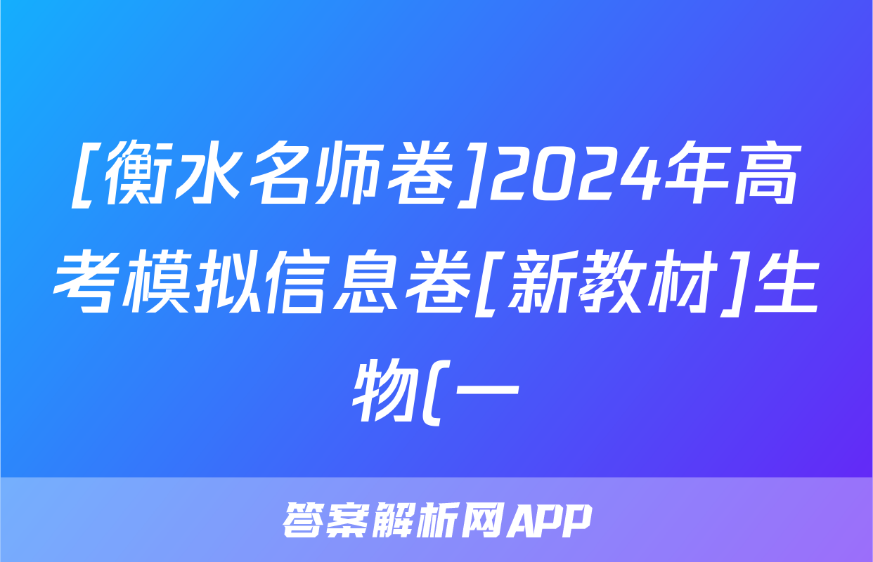 [衡水名师卷]2024年高考模拟信息卷[新教材]生物(一)1试题正在持续更新,目前2026卷行天下答案网为大家整理了相关试题及答案,供大家查缺补漏,高效提升成绩。