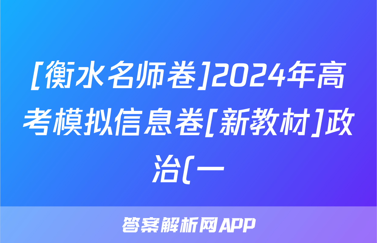 [衡水名师卷]2024年高考模拟信息卷[新教材]政治(一)1试题正在持续更新,目前2026卷行天下答案网为大家整理了相关试题及答案,供大家查缺补漏,高效提升成绩。