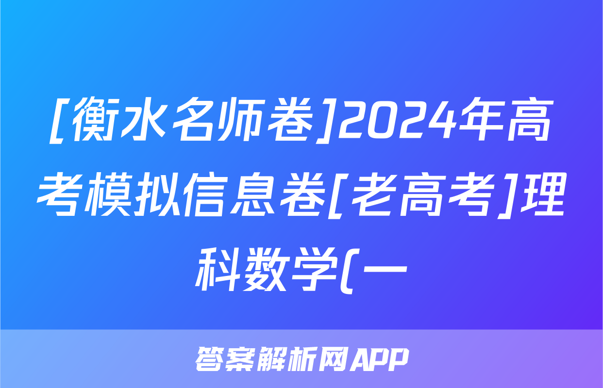 [衡水名师卷]2024年高考模拟信息卷[老高考]理科数学(一)1试题正在持续更新,目前2026卷行天下答案网为大家整理了相关试题及答案,供大家查缺补漏,高效提升成绩。