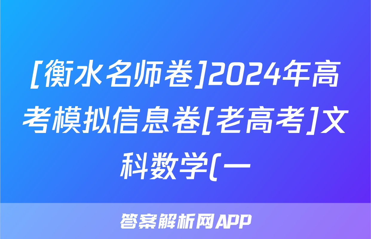 [衡水名师卷]2024年高考模拟信息卷[老高考]文科数学(一)1试题正在持续更新,目前2026卷行天下答案网为大家整理了相关试题及答案,供大家查缺补漏,高效提升成绩。