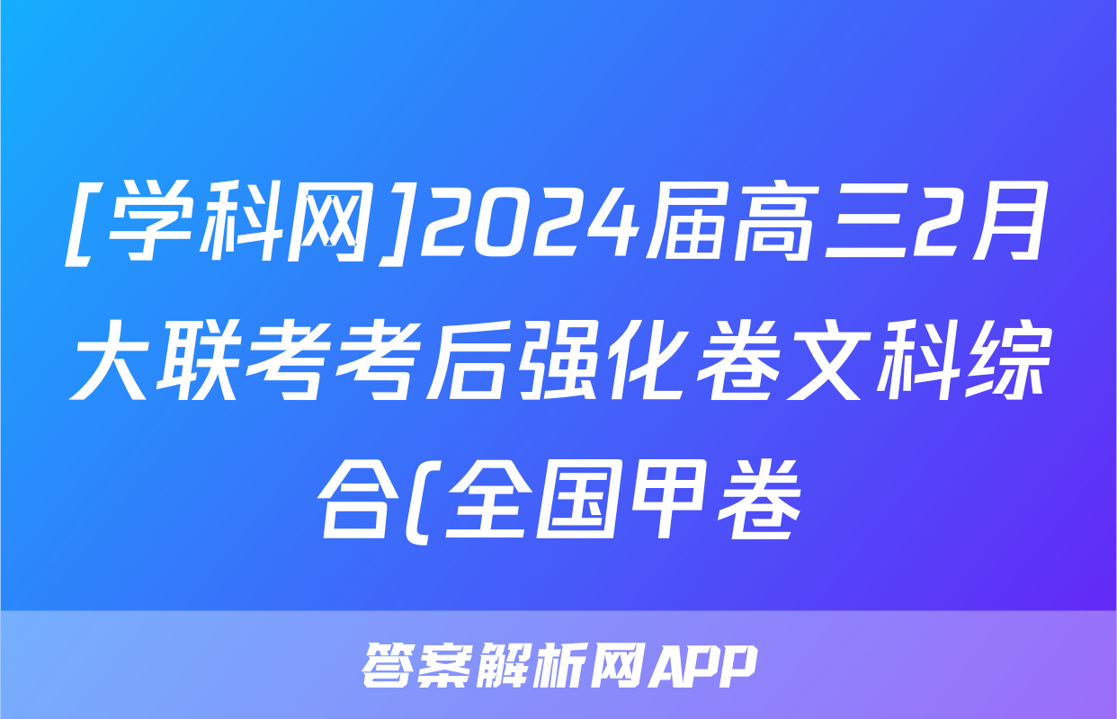 [学科网]2024届高三2月大联考考后强化卷文科综合(全国甲卷)试题正在持续更新,目前2026卷行天下答案网为大家整理了相关试题及答案,供大家查缺补漏,高效提升成绩。