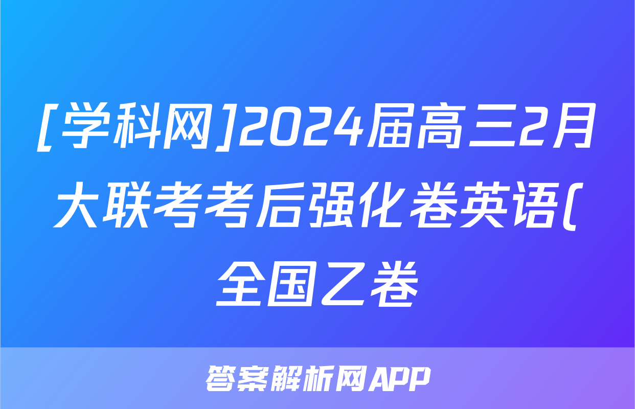 [学科网]2024届高三2月大联考考后强化卷英语(全国乙卷)答案正在持续更新,目前2026卷行天下答案网为大家整理了相关试题及答案,供大家查缺补漏,高效提升成绩。
