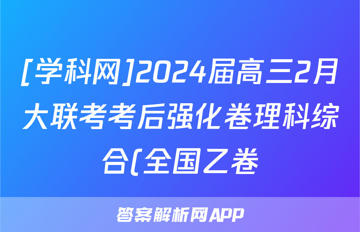 [学科网]2024届高三2月大联考考后强化卷理科综合(全国乙卷)试题正在持续更新,目前2026卷行天下答案网为大家整理了相关试题及答案,供大家查缺补漏,高效提升成绩。