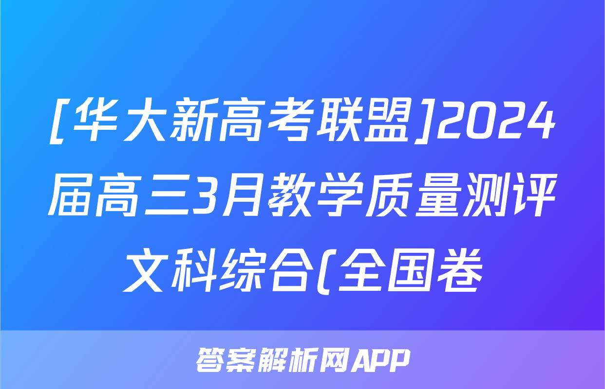 [华大新高考联盟]2024届高三3月教学质量测评文科综合(全国卷)答案正在持续更新,目前2026卷行天下答案网为大家整理了相关试题及答案,供大家查缺补漏,高效提升成绩。