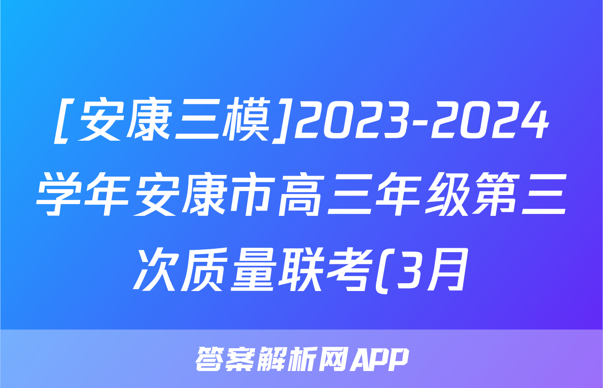[安康三模]2023-2024学年安康市高三年级第三次质量联考(3月)文科数学答案正在持续更新,目前2026卷行天下答案网为大家整理了相关试题及答案,供大家查缺补漏,高效提升成绩。