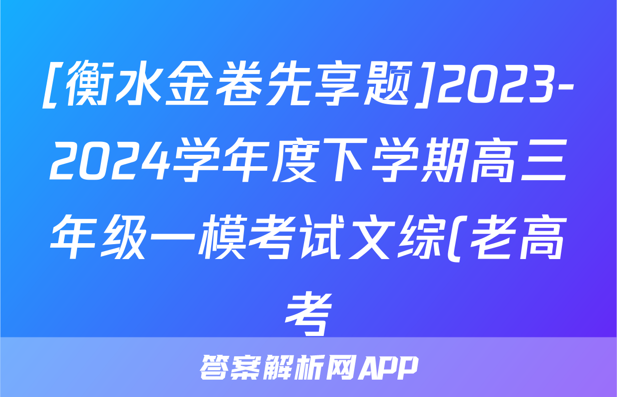 [衡水金卷先享题]2023-2024学年度下学期高三年级一模考试文综(老高考)试题正在持续更新,目前2026卷行天下答案网为大家整理了相关试题及答案,供大家查缺补漏,高效提升成绩。