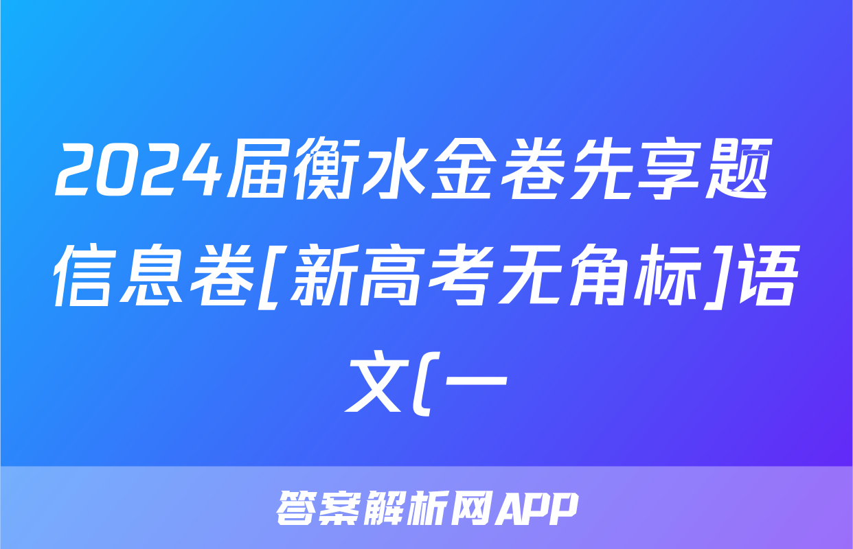 2024届衡水金卷先享题 信息卷[新高考无角标]语文(一)1答案正在持续更新,目前2026卷行天下答案网为大家整理了相关试题及答案,供大家查缺补漏,高效提升成绩。