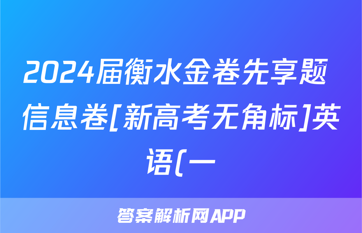 2024届衡水金卷先享题 信息卷[新高考无角标]英语(一)1答案正在持续更新,目前2026卷行天下答案网为大家整理了相关试题及答案,供大家查缺补漏,高效提升成绩。