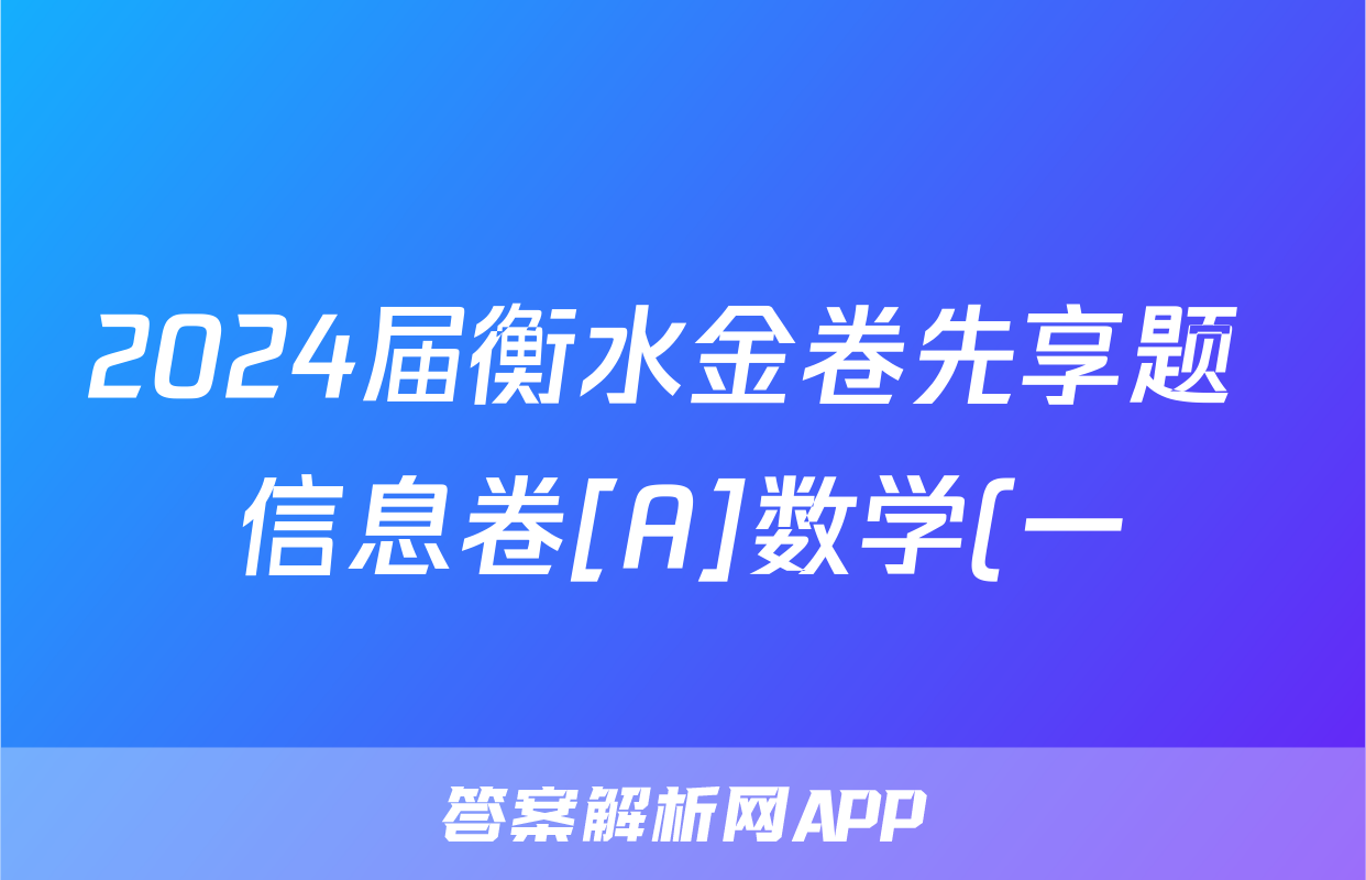 2024届衡水金卷先享题 信息卷[A]数学(一)1答案正在持续更新,目前2026卷行天下答案网为大家整理了相关试题及答案,供大家查缺补漏,高效提升成绩。