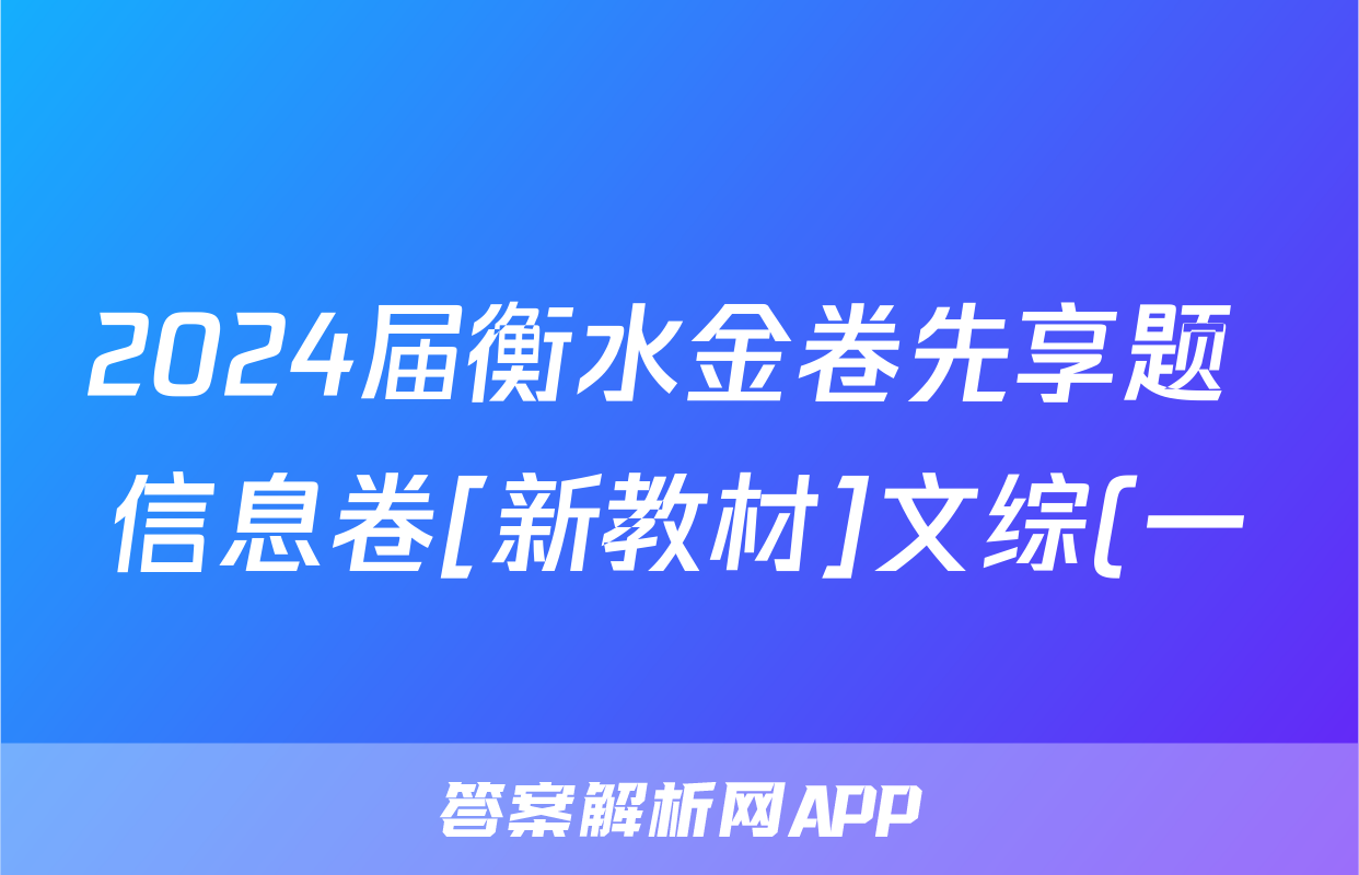 1、2024届衡水金卷先享题[信息卷](一)1文综(新教材)答案