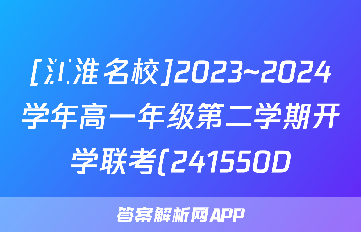 [江淮名校]2023~2024学年高一年级第二学期开学联考(241550D)生物试题正在持续更新,目前2026卷行天下答案网为大家整理了相关试题及答案,供大家查缺补漏,高效提升成绩。