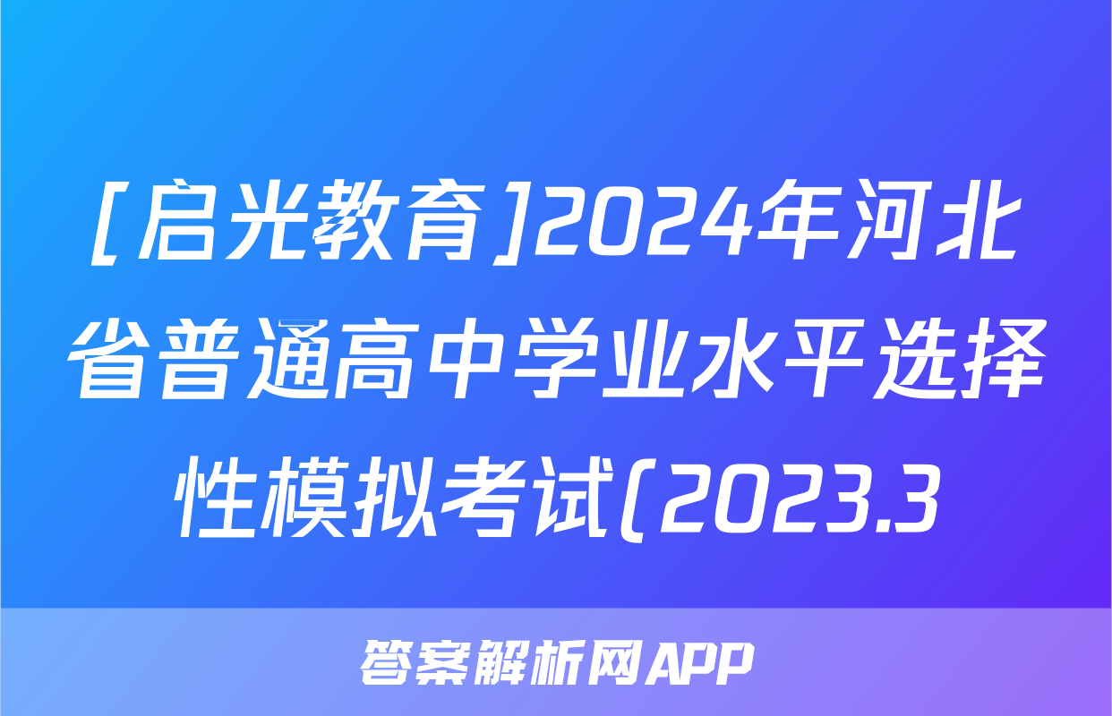[启光教育]2024年河北省普通高中学业水平选择性模拟考试(2023.3)生物试题正在持续更新,目前2026卷行天下答案网为大家整理了相关试题及答案,供大家查缺补漏,高效提升成绩。