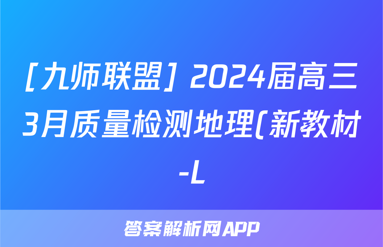 [九师联盟] 2024届高三3月质量检测地理(新教材-L)试题正在持续更新,目前2026卷行天下答案网为大家整理了相关试题及答案,供大家查缺补漏,高效提升成绩。