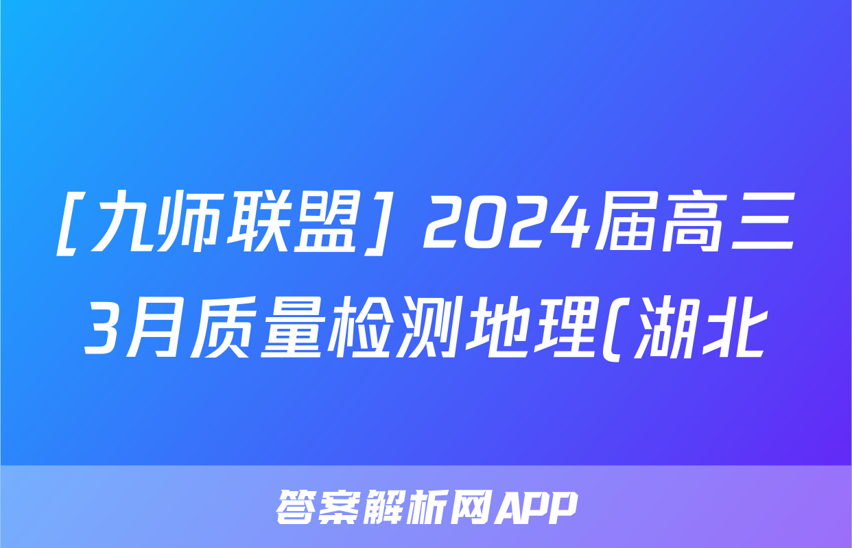 [九师联盟] 2024届高三3月质量检测地理(湖北)试题正在持续更新,目前2026卷行天下答案网为大家整理了相关试题及答案,供大家查缺补漏,高效提升成绩。