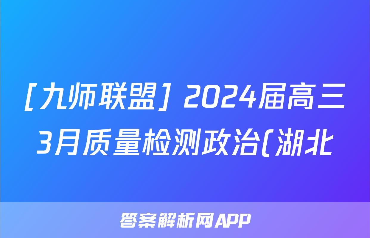 [九师联盟] 2024届高三3月质量检测政治(湖北)试题正在持续更新,目前2026卷行天下答案网为大家整理了相关试题及答案,供大家查缺补漏,高效提升成绩。