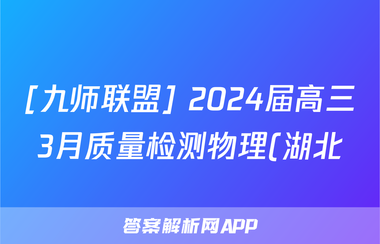[九师联盟] 2024届高三3月质量检测物理(湖北)答案正在持续更新,目前2026卷行天下答案网为大家整理了相关试题及答案,供大家查缺补漏,高效提升成绩。