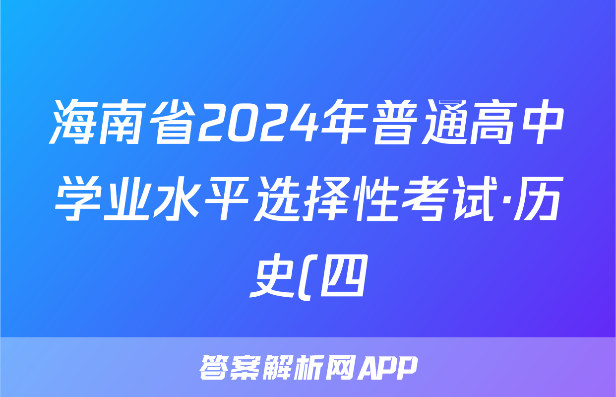 海南省2024年普通高中学业水平选择性考试·历史(四)4[24·(新高考)ZX·MNJ·历史·HAIN]答案正在持续更新,目前2026卷行天下答案网为大家整理了相关试题及答案,供大家查缺补漏,高效提升成绩。