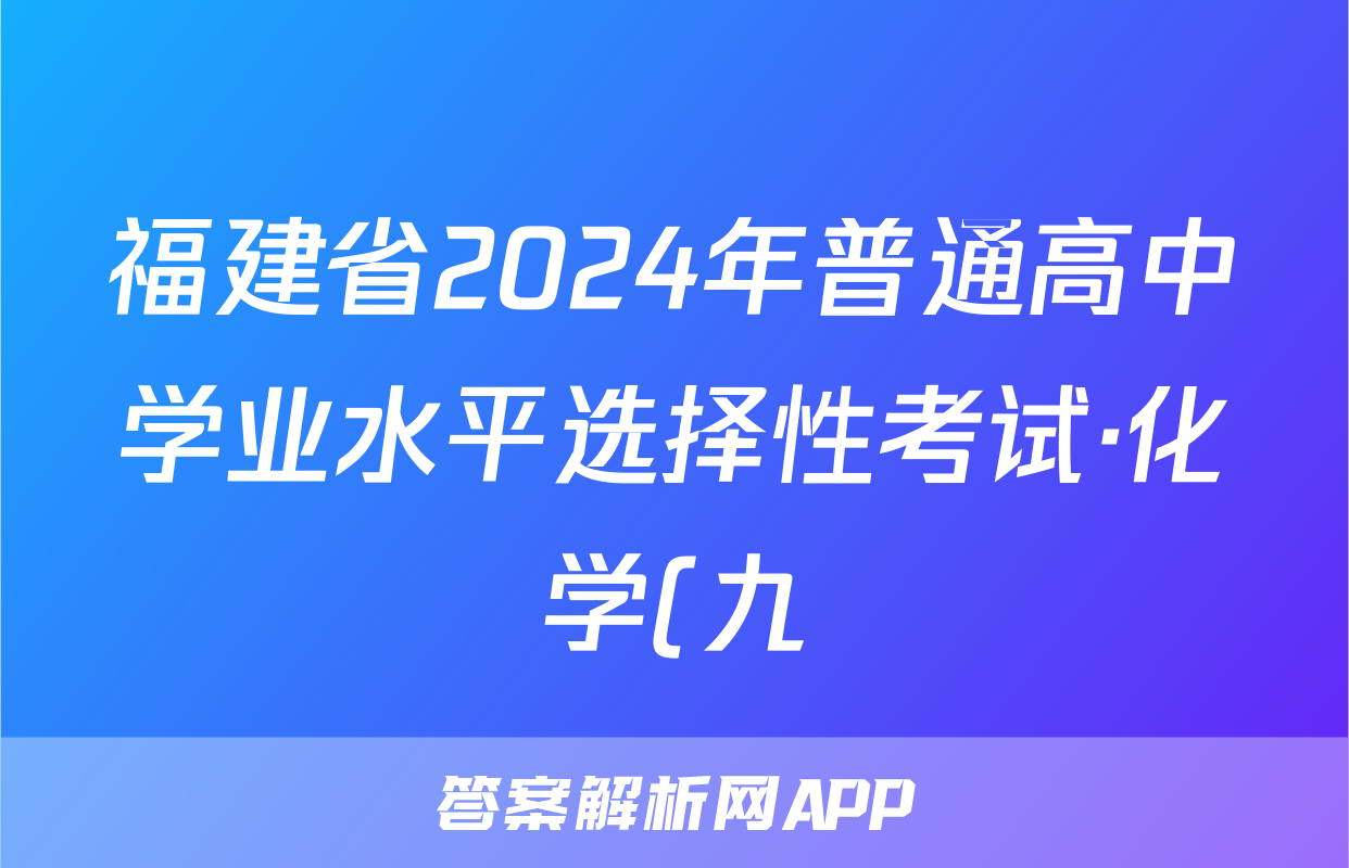 福建省2024年普通高中学业水平选择性考试·化学(九)9[24·(新高考)ZX·MNJ·化学·FJ]试题正在持续更新,目前2026卷行天下答案网为大家整理了相关试题及答案,供大家查缺补漏,高效提升成绩。