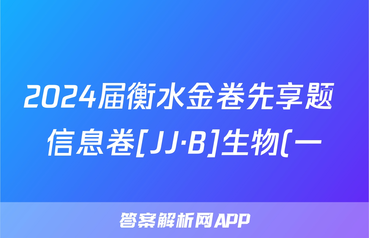 2024届衡水金卷先享题 信息卷[JJ·B]生物(一)1答案正在持续更新,目前2026卷行天下答案网为大家整理了相关试题及答案,供大家查缺补漏,高效提升成绩。
