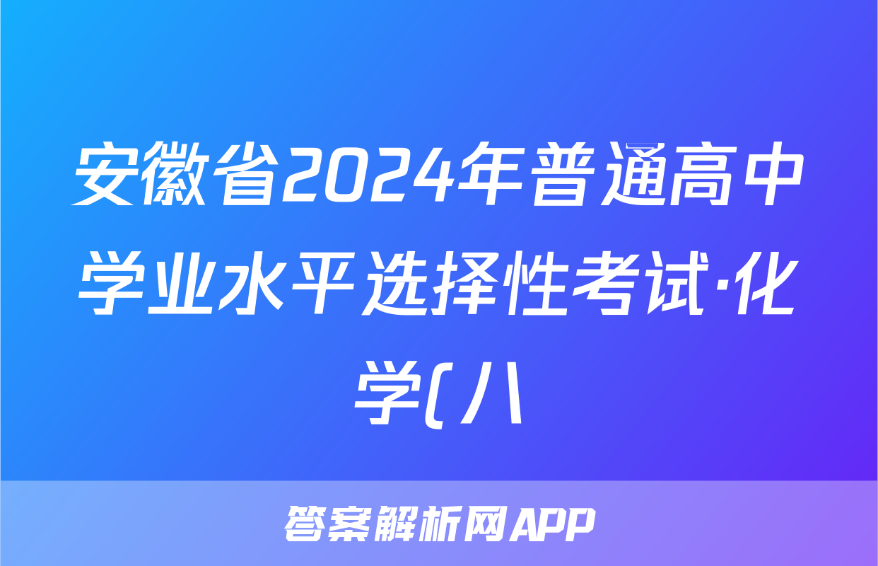 安徽省2024年普通高中学业水平选择性考试·化学(八)8[24·(新高考)ZX·MNJ·化学·AH]试题正在持续更新,目前2026卷行天下答案网为大家整理了相关试题及答案,供大家查缺补漏,高效提升成绩。