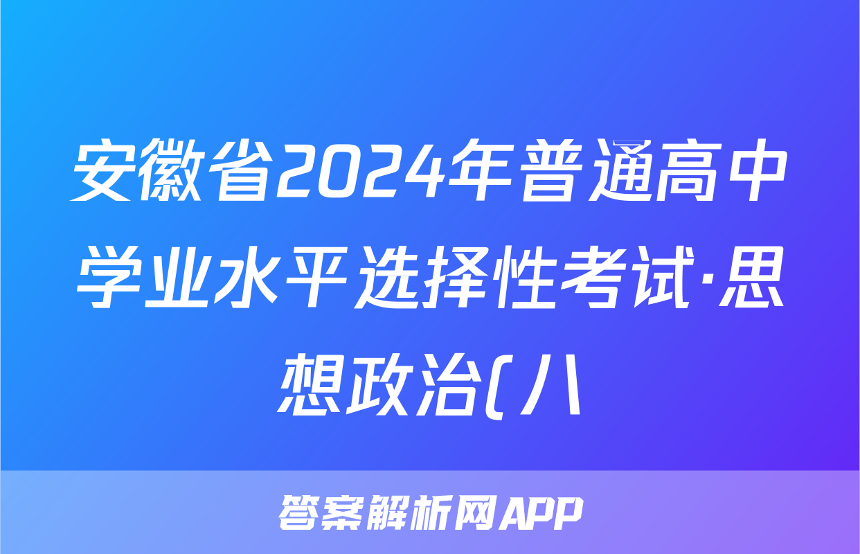 安徽省2024年普通高中学业水平选择性考试·思想政治(八)8[24·(新高考)ZX·MNJ·思想政治·AH]试题正在持续更新,目前2026卷行天下答案网为大家整理了相关试题及答案,供大家查缺补漏,高效提升成绩。