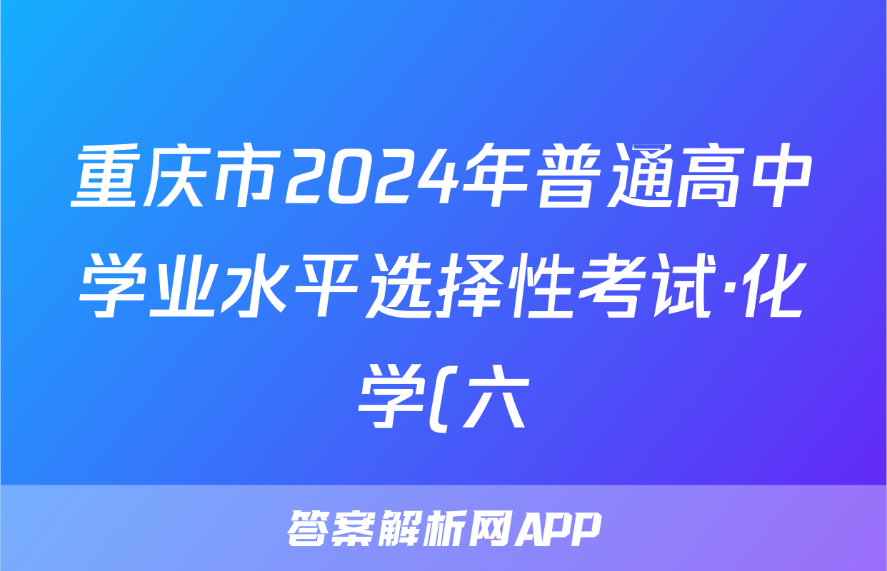 重庆市2024年普通高中学业水平选择性考试·化学(六)6[24·(新高考)ZX·MNJ·化学·CQ]答案正在持续更新,目前2026卷行天下答案网为大家整理了相关试题及答案,供大家查缺补漏,高效提升成绩。