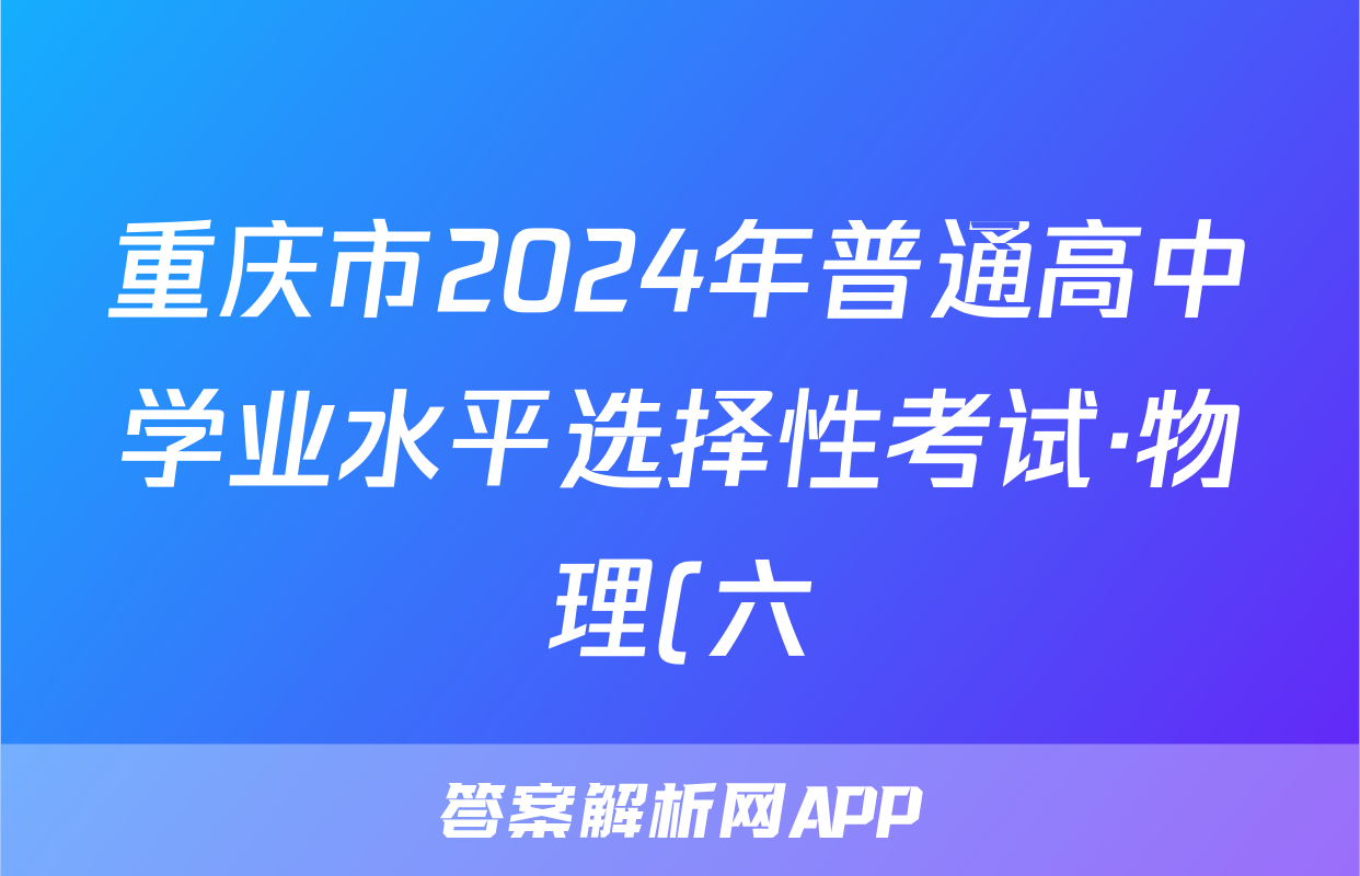 重庆市2024年普通高中学业水平选择性考试·物理(六)6[24·(新高考)ZX·MNJ·物理·CQ]答案正在持续更新,目前2026卷行天下答案网为大家整理了相关试题及答案,供大家查缺补漏,高效提升成绩。
