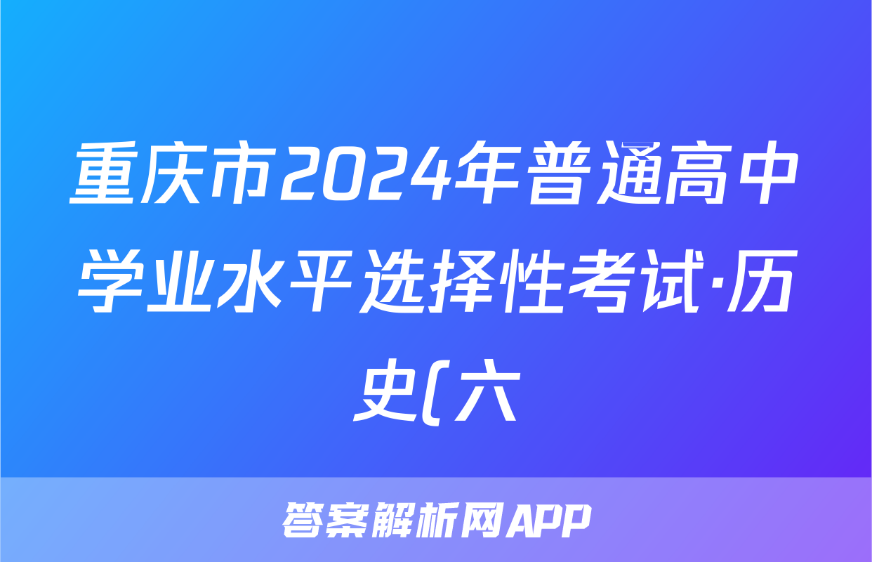 重庆市2024年普通高中学业水平选择性考试·历史(六)6[24·(新高考)ZX·MNJ·历史·CQ]答案正在持续更新,目前2026卷行天下答案网为大家整理了相关试题及答案,供大家查缺补漏,高效提升成绩。