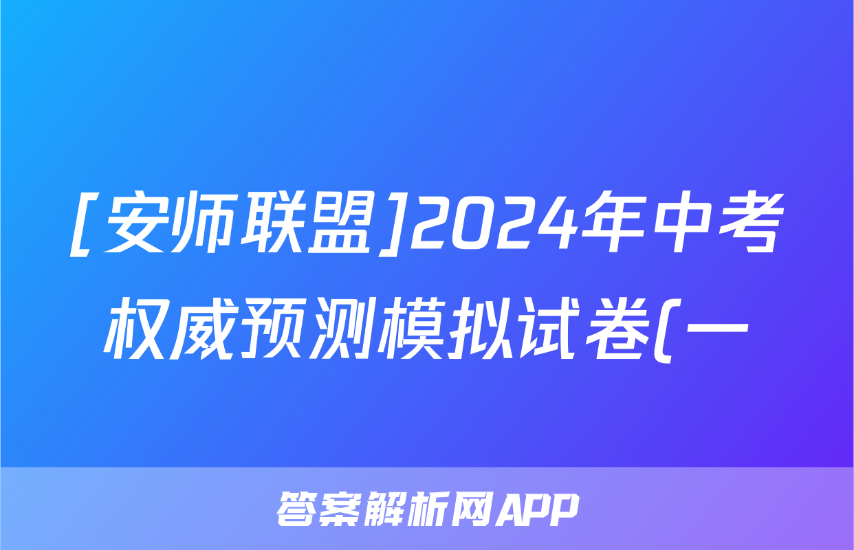 [安师联盟]2024年中考权威预测模拟试卷(一)1历史答案正在持续更新,目前2026卷行天下答案网为大家整理了相关试题及答案,供大家查缺补漏,高效提升成绩。