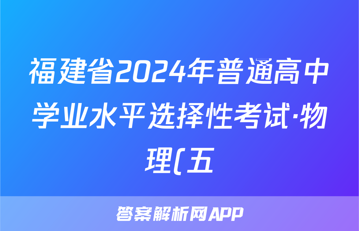 福建省2024年普通高中学业水平选择性考试·物理(五)5[24·(新高考)ZX·MNJ·物理·FJ]试题正在持续更新,目前2026卷行天下答案网为大家整理了相关试题及答案,供大家查缺补漏,高效提升成绩。