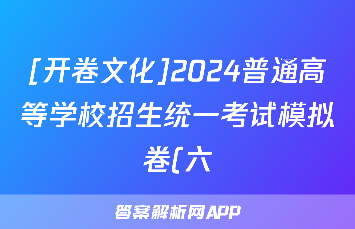 [开卷文化]2024普通高等学校招生统一考试模拟卷(六)6化学XN答案正在持续更新,目前2026卷行天下答案网为大家整理了相关试题及答案,供大家查缺补漏,高效提升成绩。