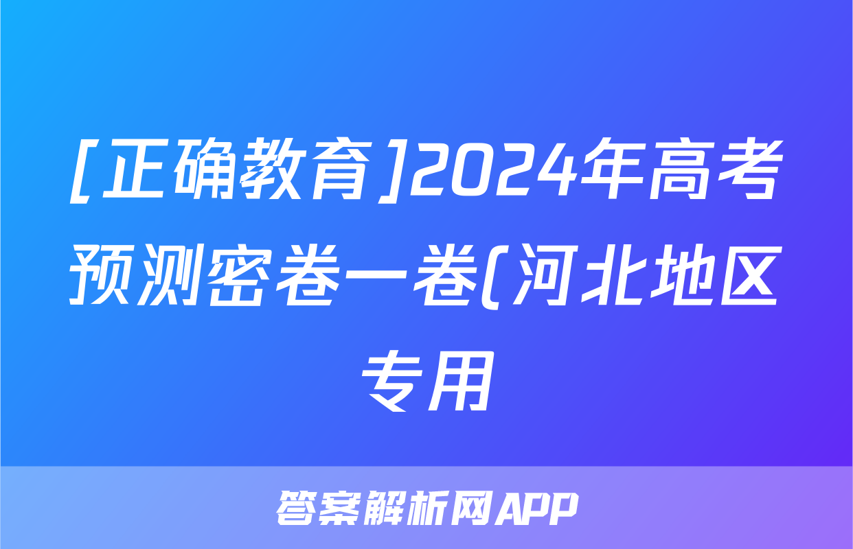 [正确教育]2024年高考预测密卷一卷(河北地区专用)政治(河北)答案正在持续更新,目前2026卷行天下答案网为大家整理了相关试题及答案,供大家查缺补漏,高效提升成绩。